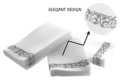 Absorbent and High Quality Napkin: Made of thick and durable material paper towels that dry your hands easily and that are disposable, perfect for dinner tables and guest bathrooms. This gives an attraction and convenience for your guests while having a fine dining at your house or any other special occasion.Elegant & Classy Disposable Guest Towels: Beautiful and luxurious design towels that add sophistication to your living room dinner table, in your house guest washroom room or even in your executive offices. Simple and gorgeous which will make every dining table look great and appealing for your every guest.