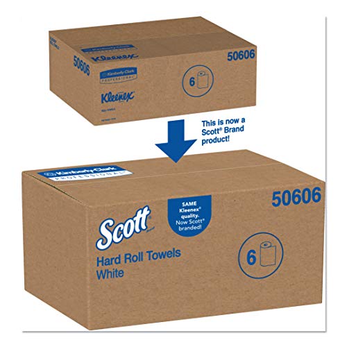 Kleenex Hard Roll Paper Towels can be an important piece of your hygiene puzzle. Forced air dryers and hot air dryers can take two or even three times as long to use as a paper towel, and studies show that, while the overall cost per use is comparable, the likelihood of spreading germs is greatly reduced with the use of absorbent, single-use drying towels, such as Kleenex Hard Roll Paper Towels. Germ counts are significantly lower following the use of a touch-free paper towel dispenser—as much as a 200% decrease when compared with using either jet or hot air dryers. And, rather than blowing germs into the air during use, the paper towels are thrown neatly away. These paper towel rolls offer terrific hand drying performance, so your guests will waste less. Towel/Wipe Type: Hardwound Roll Towel; Application: General Purpose; Material(s): Paper; Number of Plies: 1.Small 6 roll case size for easy storage (1 roll = 600 feet, 1 case = 3600 feet); Same Kleenex quality, now Scott branded